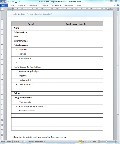 06301 Optimierung von Übergaben in der Pflege: mit knappen Ressourcen zu besseren Ergebnissen